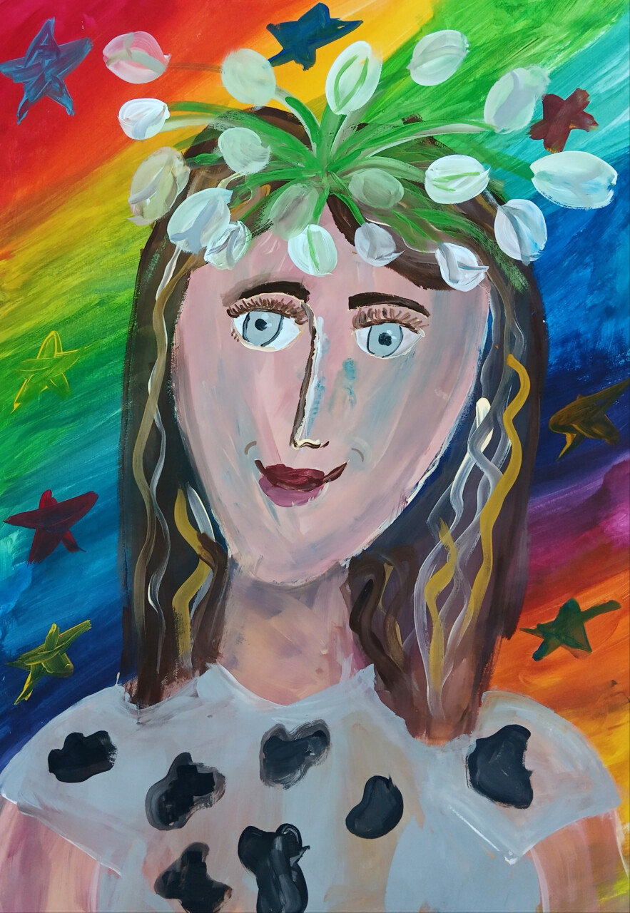 Рисунок выполнен гуашью на формате А2 ,посвящен маме ,нарисован к дню матери