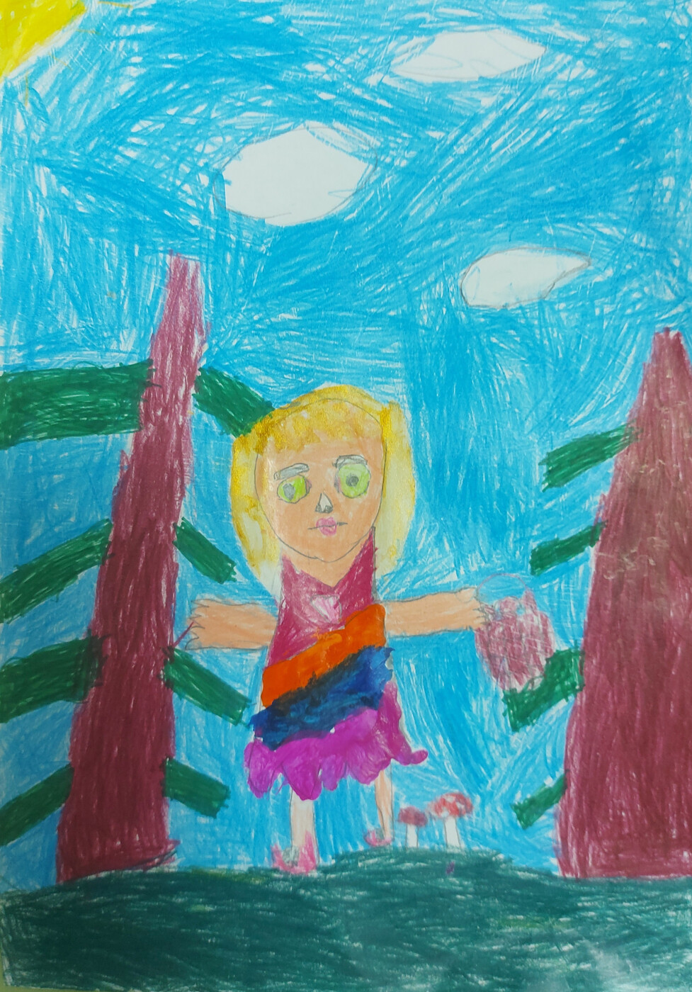 Работа Смирнова Артёма 6 лет. Артём нарисовал свою мамочку, которая собирает грибы.