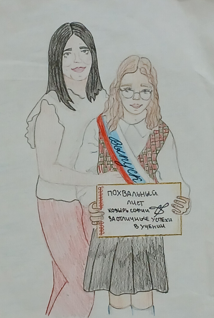 Рисунок выполнен цветными карандашами и фломастером.