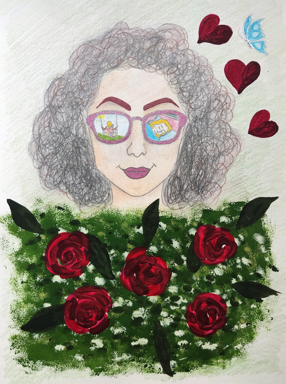 Света постаралась изобразить маму близко к реальному образу )) Рисовала карандашами, гелевыми ручками и гуашью.