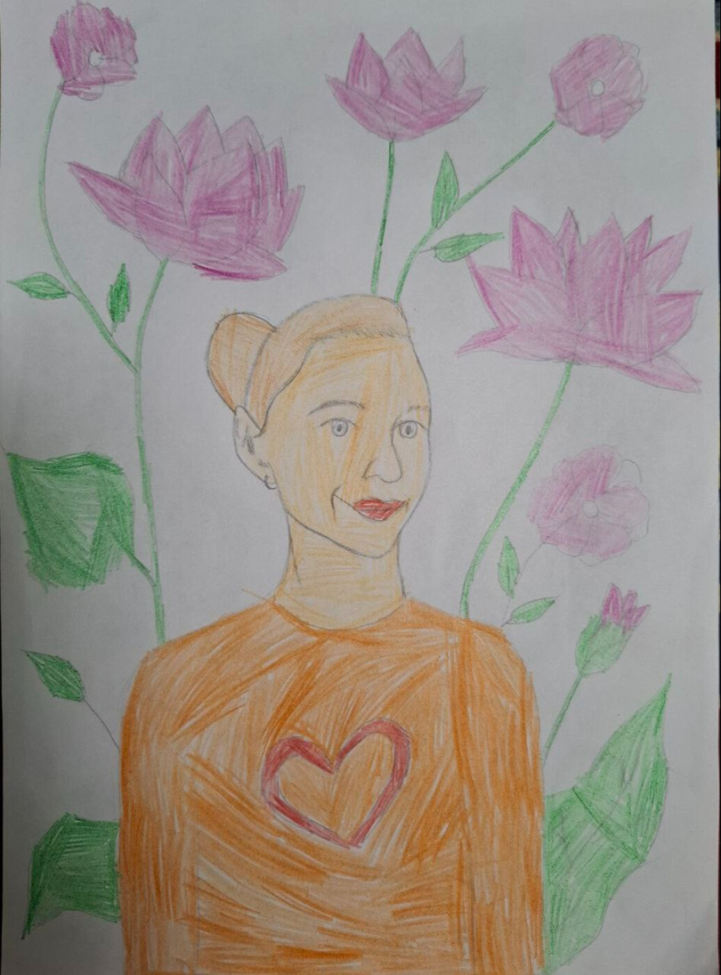 Моя мама самая красивая! Её зовут Вика! Она фитнес тренер, поэтому всегда стройная, весёлая и требовательная. Мама очень любит цветы, а я - МАМУ!