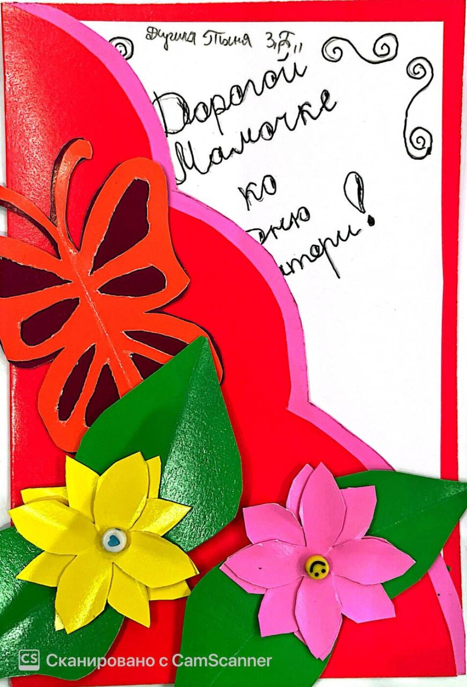 Открытка ко Дню Матери. Выполнила ученица 3 класса.