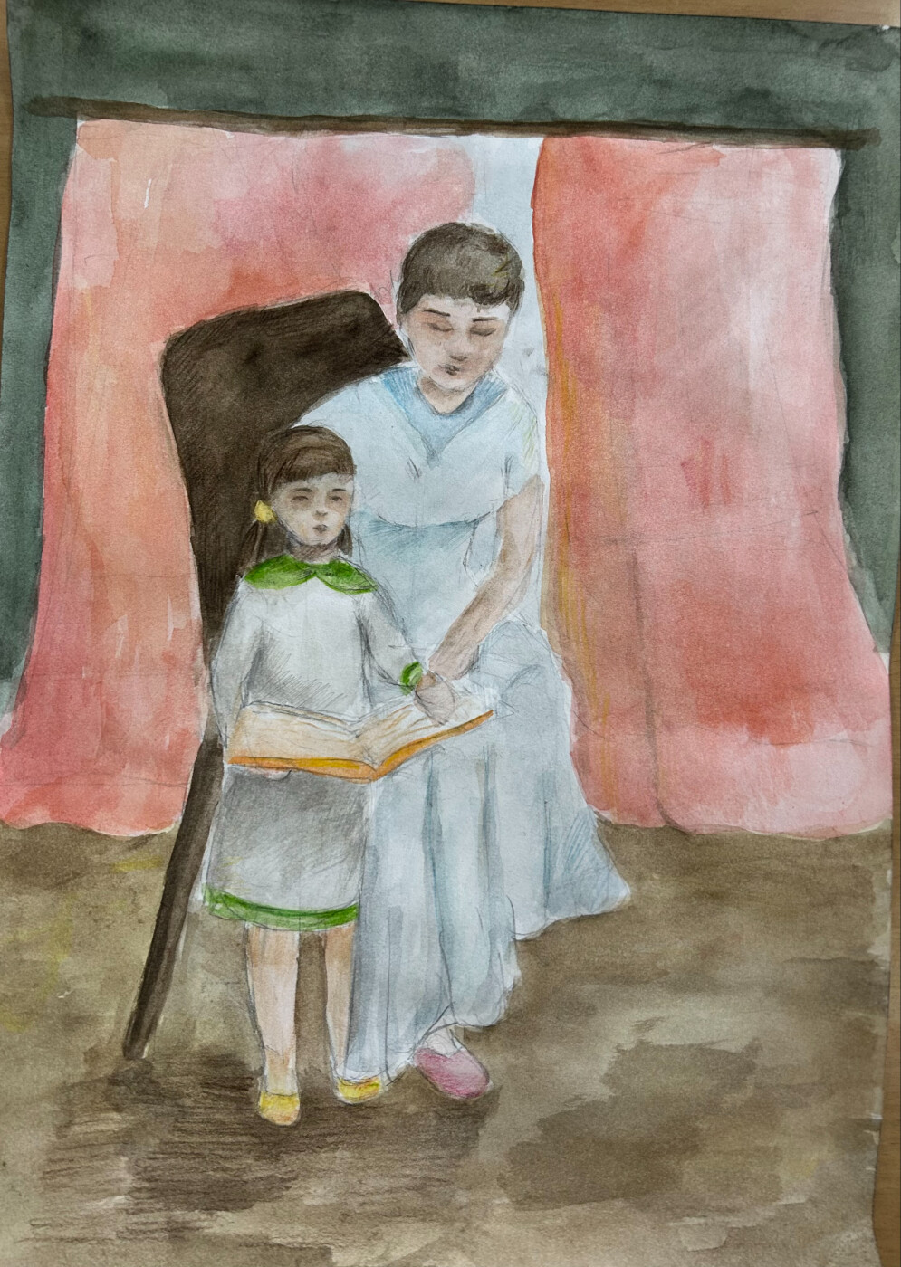 Рисунок Ксении о том как часто в детстве мамы читают нам веселые, интересные, поучительные рассказы и сказки. Больше всего Ксении нравятся сказки. В детстве мама каждый вечер перед сном, читала сказки о добре и зле, но всегда побеждает добро! Самая любимая сказка девочки " Золушка". В ней происходит чудесное превращение красавицы. Кто ж не мечтает о таком чуде?! Вот и Ксения с удовольствием всегда ждала мамины чтения "Золушки". Ксюша сама любит писать небольшие сказочные сюжеты и рисует к ним иллюстрации. Мечты Ксении, верим, сбудутся , она мысленно хотела быть иллюстратором и писать замечательные детские рассказы. А пока участие в конкурсе с рисунком " Мамины сказки".