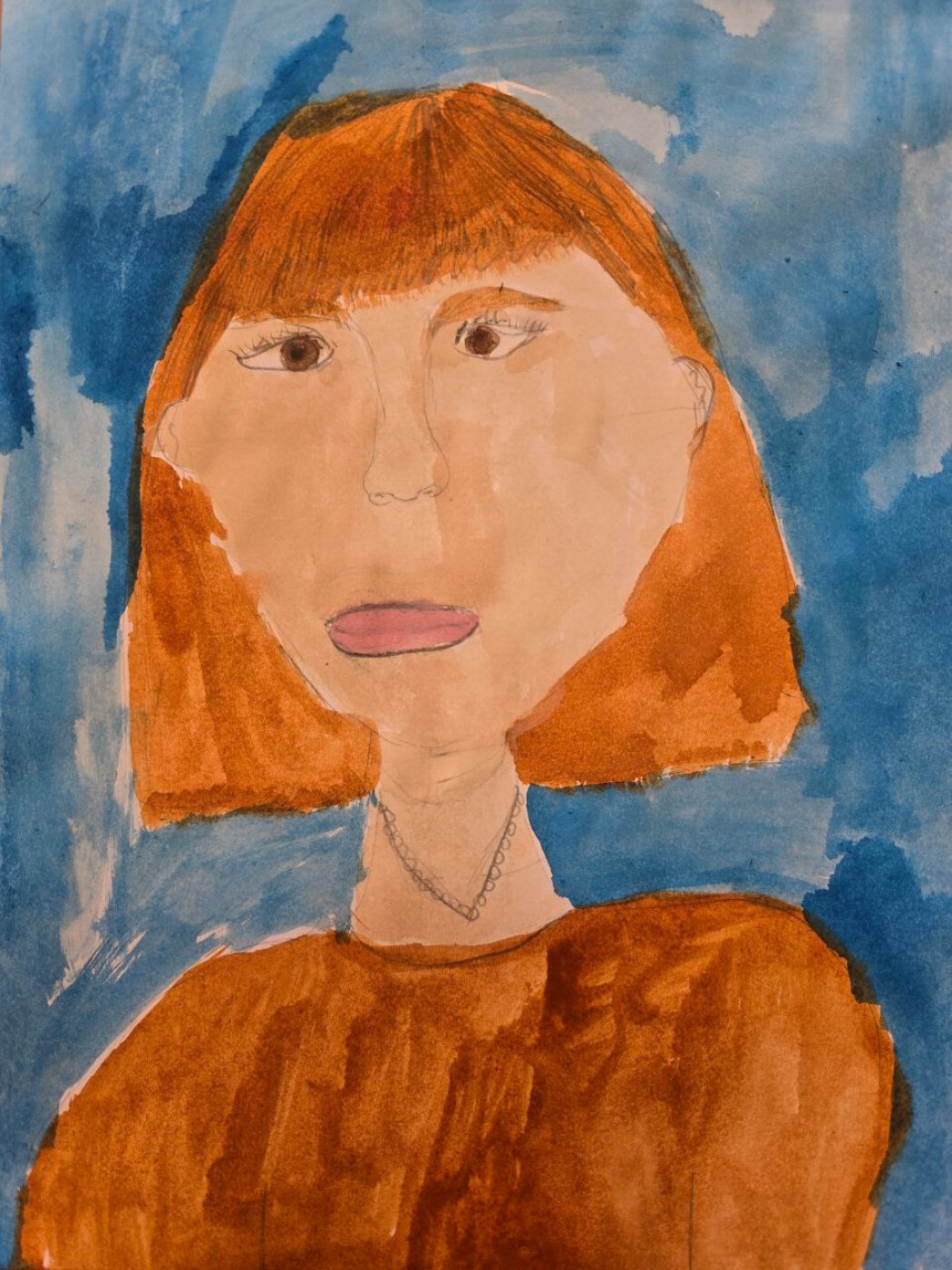 рисунок выполнен красками и цветными карандашами