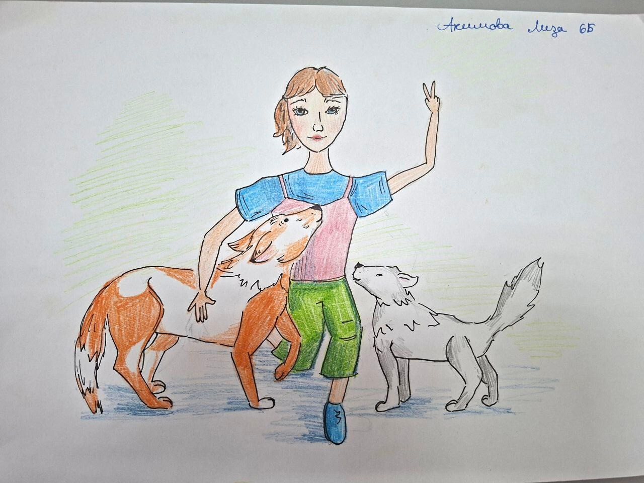 На листе запечатлена моя мама, которая, улыбаясь, играет с двумя собакам. Их радостный бег и преданные взгляды отражают ту простую, но сокровенную мечту мамы — проводить время в компании любимых четвероногих друзей, ощущая лёгкость и беззаботность. Пока эта сцена остаётся лишь на моем рисунке, но она хранит в себе обещание будущих радостей, когда мечта наконец осуществится.