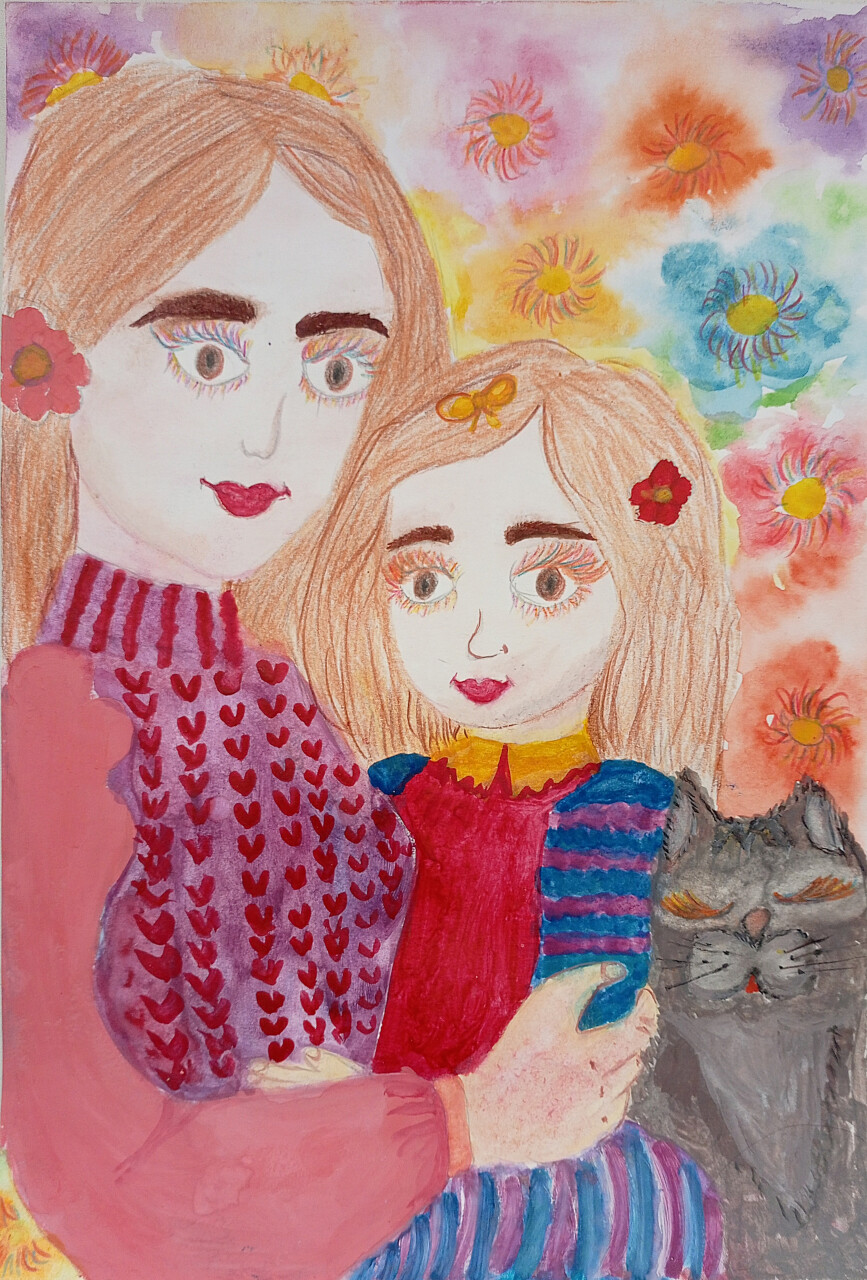 В нашей семье, мы дети, больше похожи на маму Наташу. У брата и у меня большие карие мамины глаза. у нас даже кот большеглазый. Она нас очень любит и называет цветами её жизни.