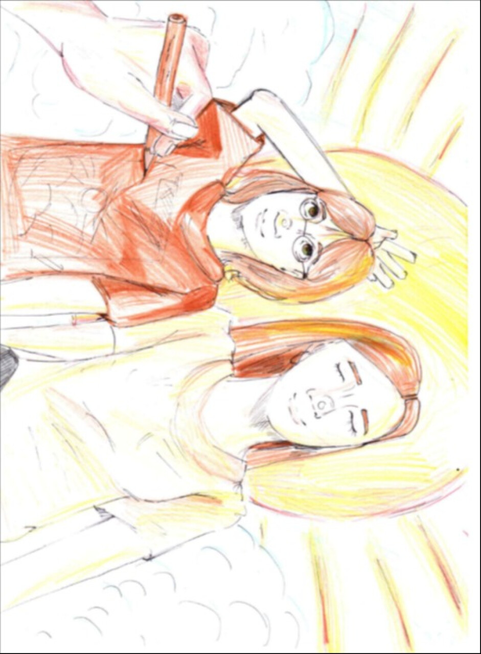 Рисунок под названием "Мы с мамой" - окно в мир детской любви и привязанности. Автор запечатлела себя и свою маму, используя яркие цветные карандаши и добавляя выразительности контурам черной ручкой.