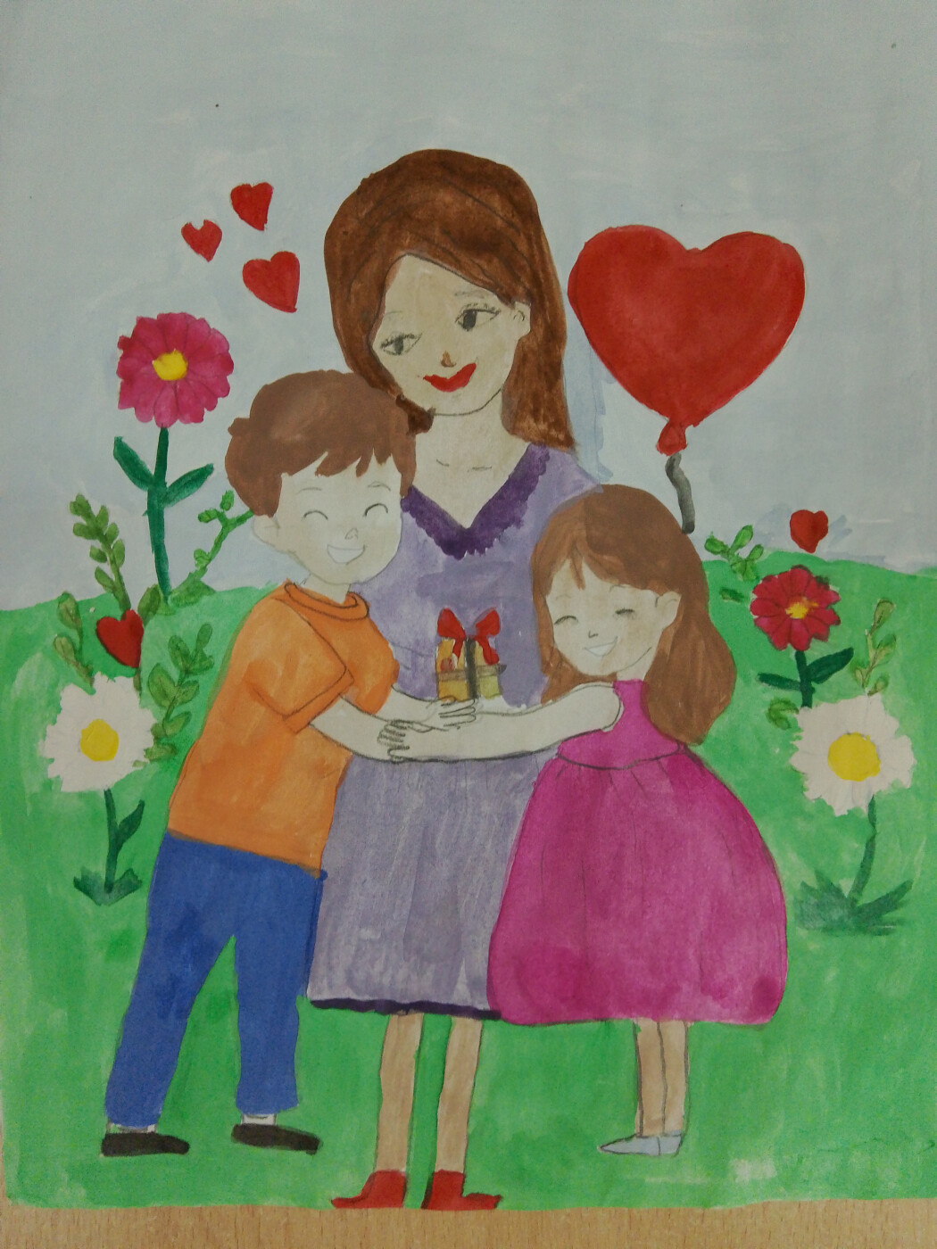 Рисунок был нарисован ребёнком акварельными красками в преддверии праздника "День матери"