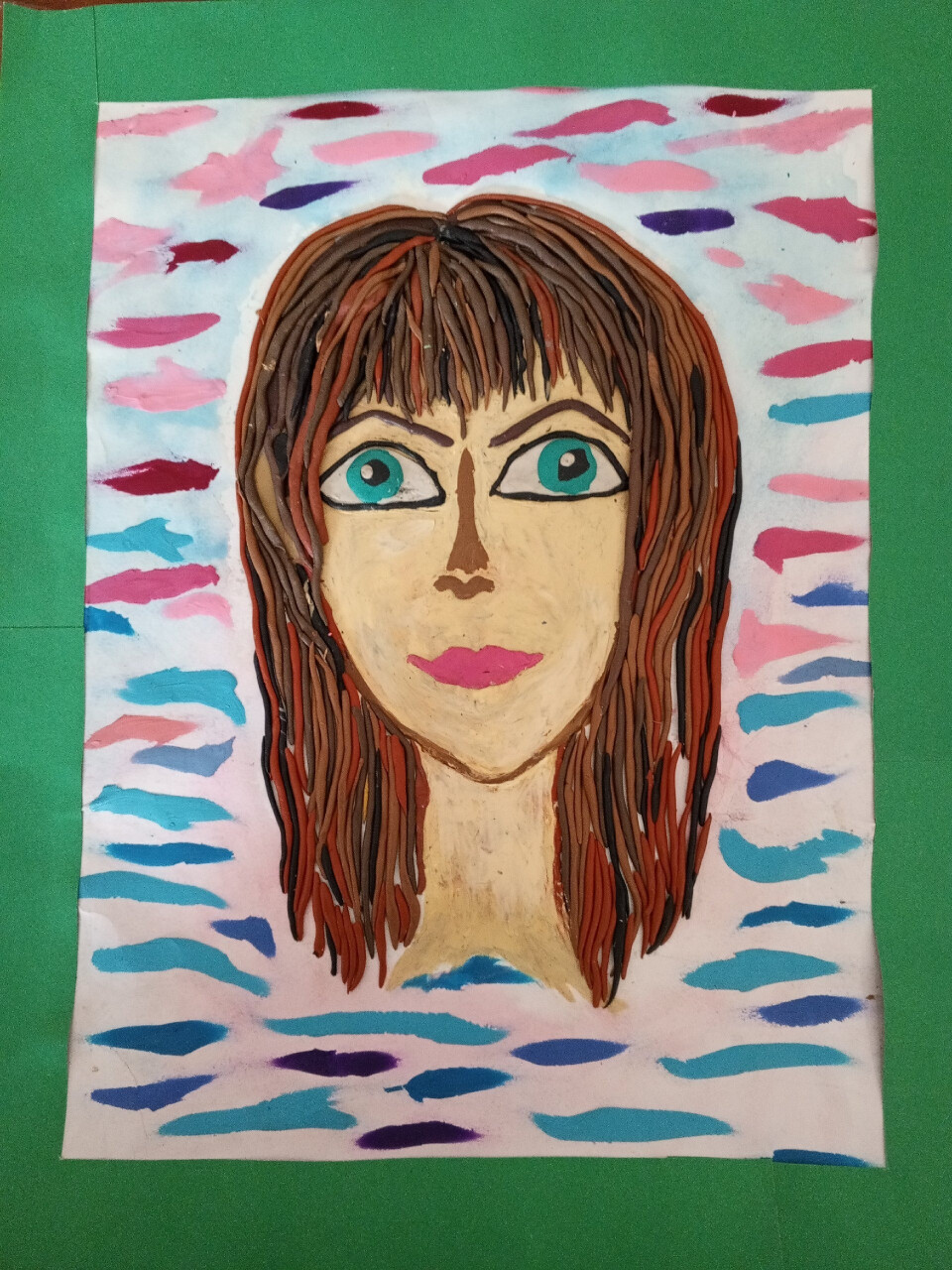 Работа выполнена в технике пластилинография. На момент выполнения работы участнику было 8 лет.