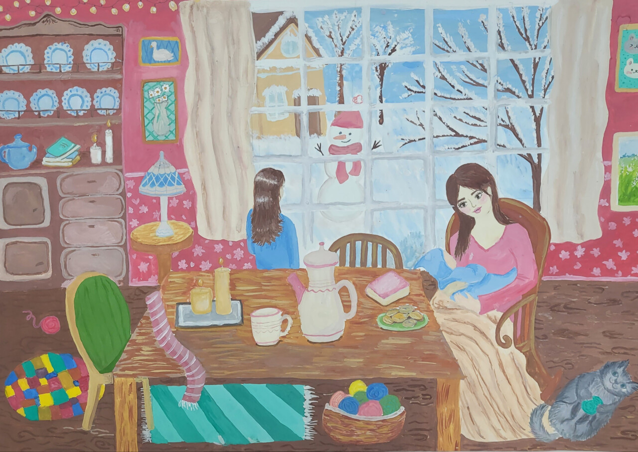 Рисунок "Зимний день" выполнен в технике живопись. Краски - гуашь.