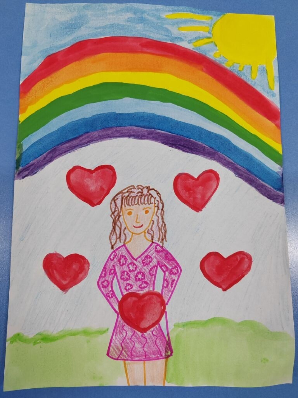 Яркая работа Дамира показывает и доказывает безграничную, глубокую ,искреннею и чистую любовь ребенка к маме.