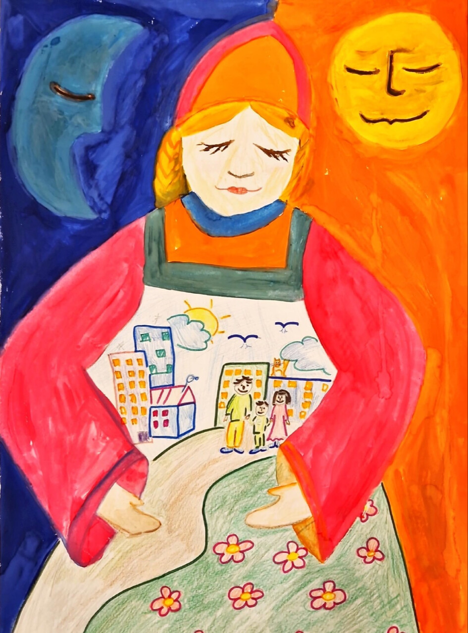 В этой работе я отразил образ Мамы Мира которая бережет своих детей, семью и весь мир.
