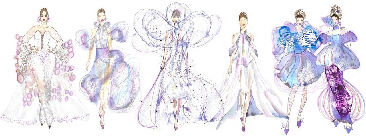 Данная коллекция выполнена в авангардном стиле. Цветовая гамма по светлоте - средняя, по насыщенности - яркая. Тональность -контрастная. Коллекция от кутюр, ее заказывают для выхода в свет или торжеств, так как такую одежду не создашь для массового производства и продажи в магазинах.
