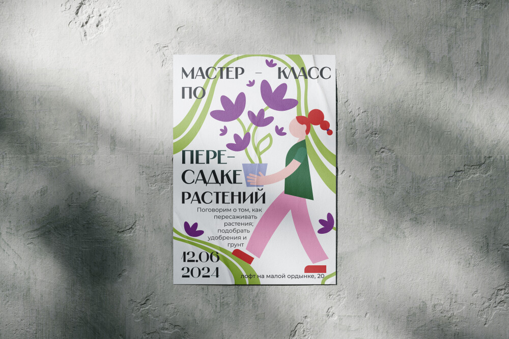 Плакат выполнен с помощью простой графики в стиле флэт иллюстрации.