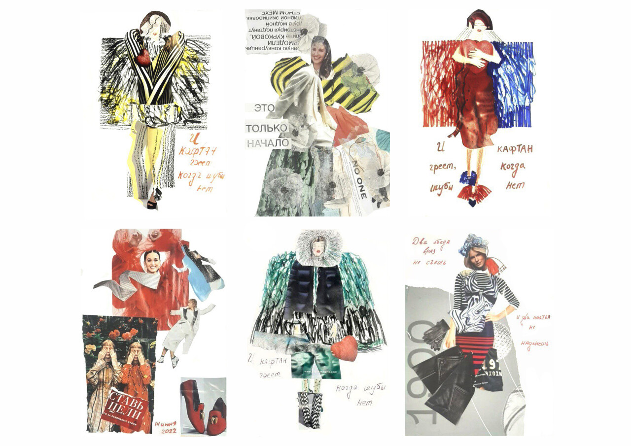 Тема вдохновила на создание эскизов в технике коллаж. В каждом коллаже сочетаются изображения, текст и элементы декора, которые вместе создают атмосферу и настроение.