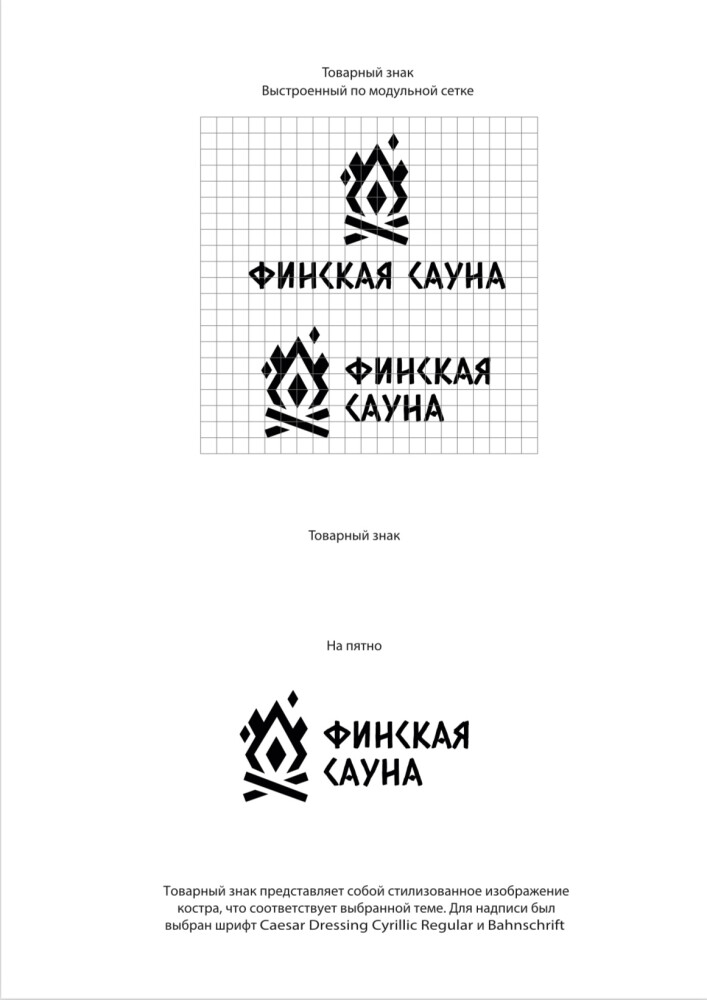 Товарный знак представляет собой стилизованное изображение костра, что соответствует выбранной теме. Для надписи был выбран шрифт Caesar Dressing Cyrillic Regular и Bahnschrift
