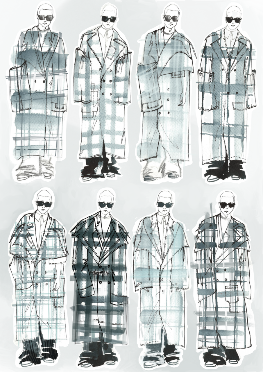 Стереотипы о Петербурге послужили главным источником вдохновения при создании данной эскизной коллекции. Дождь, серость и классическое пальто - это первое, о чем думаешь при слове Питер. И частично в этом есть правда. Мне хотелось переосмыслить привычный крой пальто и добавить элементы деконструктивизма и ассиметрии, чтобы классика была не только вечной, но и стильной.