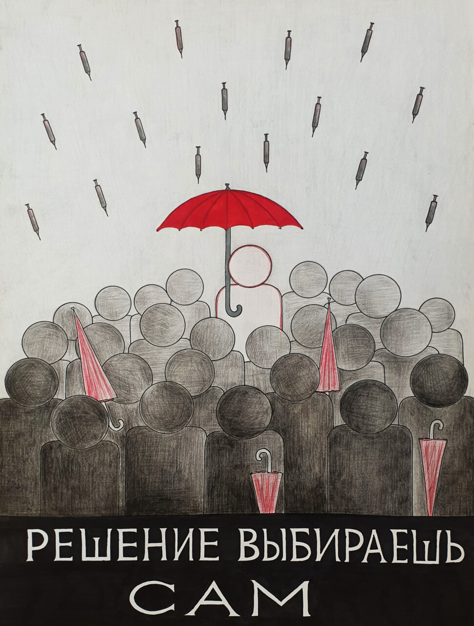 Социальный плакат на тему наркотиков, выполненный в технике ручной графики, материалы - акварельные карандаши, маркеры для скетчинга, линеры, формат А3