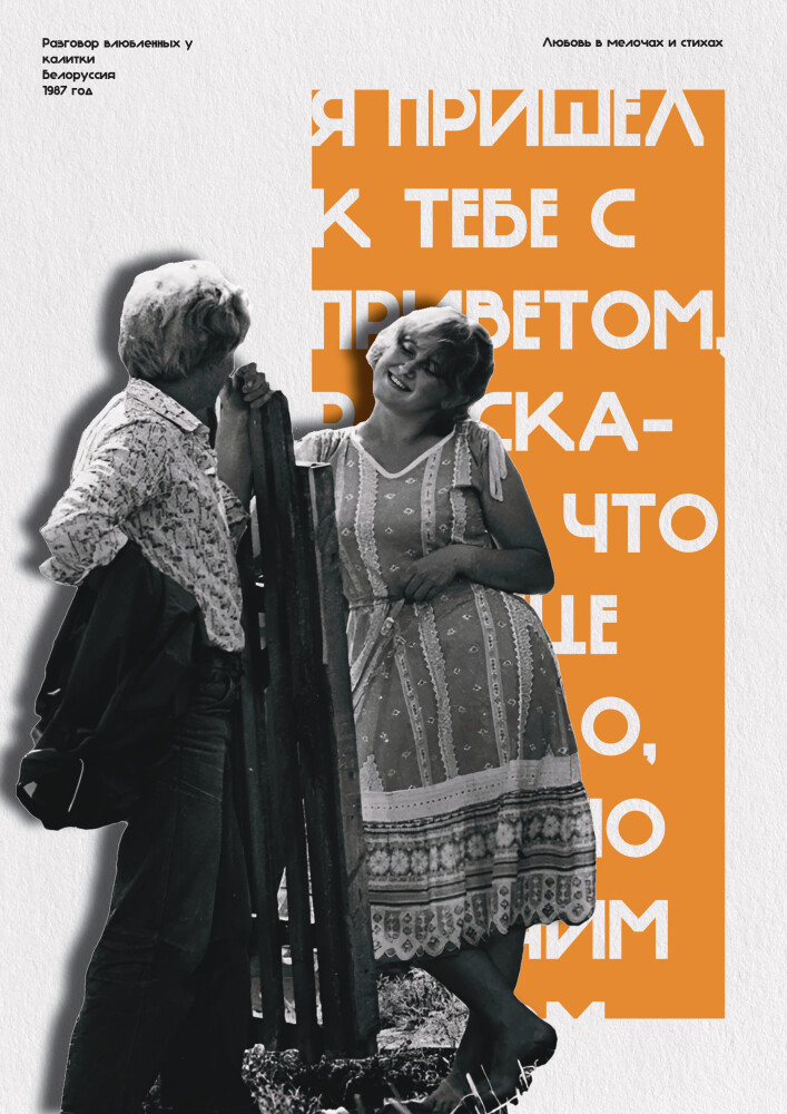 Серия социальных плакатов на тему взаимоотношений, вдохновленная старыми советскими фотографиями и стихами русских писателей. Работы выполнены в компьютерной графике.