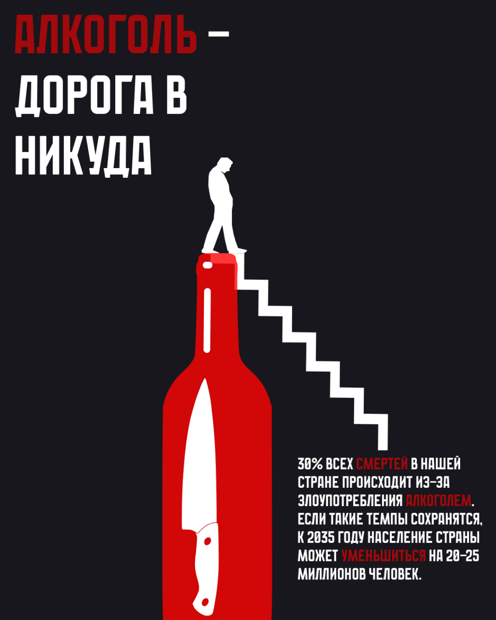 Цель этого плаката — донести мысль о том, что алкоголь — это разрушительная сила, которая может завести в тупик, разрушив отношения, здоровье и возможности. Он призывает зрителя взять свою жизнь под контроль и отказаться от алкоголя.
