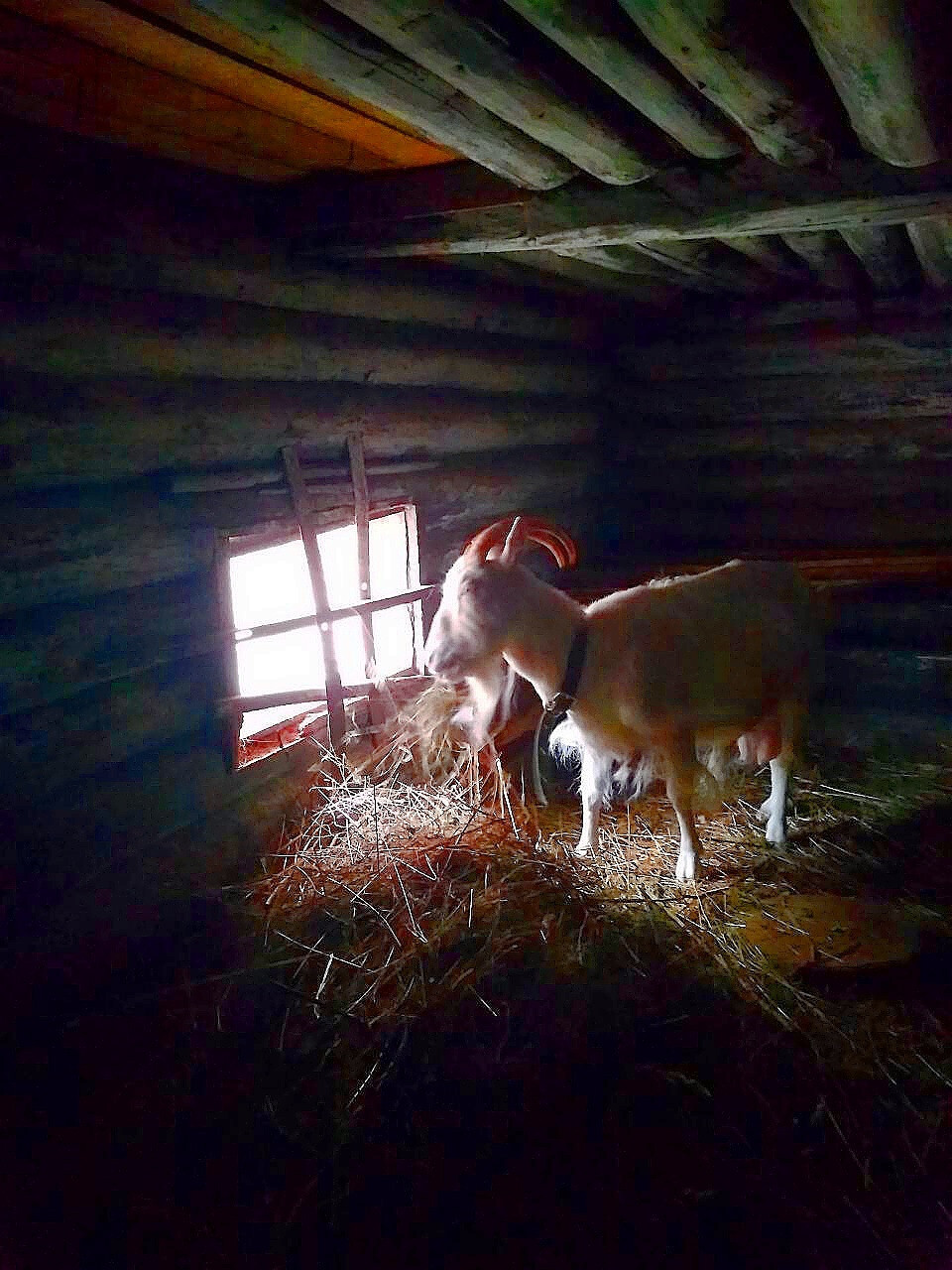 Какая жизнь в деревне без скотинки? Она дарит нам тепло и пищу. Она же делит с нами все наши тяготы и радости. Заснежено, заморожено в деревне зимой. То мороз, то пурга, то ледяной дождь. Только и пересиживать все неприятности в тёплом домике. А в окошко льётся дневной свет. И посылает надежду на скорый приход весны, на встречу с зелёным лугом, возможность побегать да и пободаться, как же без этого :)))