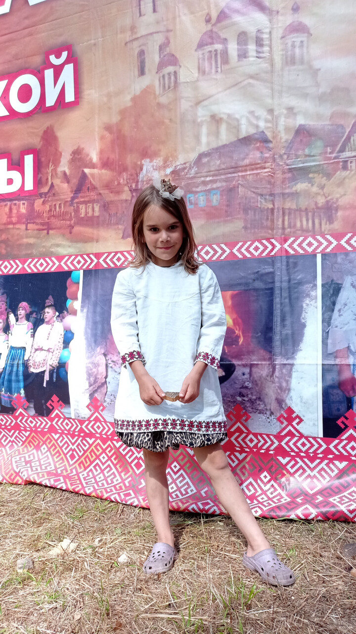 Фотография сделана в июле 2021г. в с. Козлово. В это период традиционно проходит фестиваль карельской культуры Oma Randa («Родной край» по-карельски). На площадке фестиваля проходят выступления различных творческих коллективов, игры для взрослых и детей, ярмарка, пекут традиционные карельские пироги «калитки». В числе коллективов выступают и маленькие артисты. Они изо всех сил стараются порадовать гостей фестиваля.