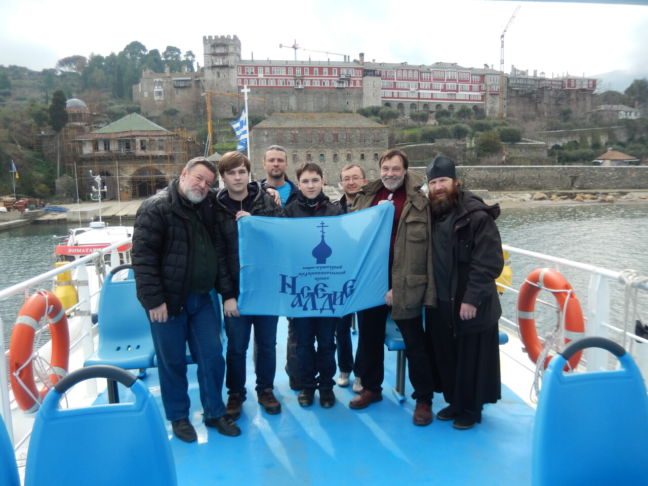 У каждого значимого и уникального события всегда есть свои Символы и Знаки. За свою 20-летнюю историю Фестиваль ″Наследие″ и созидательный проект "Наследие" накопил достаточное количество узнаваемых, визуальных образов. Но для меня лично , самым самым является, Флаг проекта, с поднятия которого начинались и завершались наши встречи на Фестивале. но есть еще один факт из "жизни" флага, это его путешествия с наследниками по стране, по святым и знаковым местам. Фото, которое я выкладываю на конкурс, один из эпизодов "путешествия" флага на священный остров Афон. На заднем фоне монастырь Ватопед. На переднем - такие дорогие лица: Александр Иванович Парамонов с внуком Ваней, Александр Николаевич Камнев с сыном Олегом, отец Димитрий с сыном Тимофеем, Валера из Казани