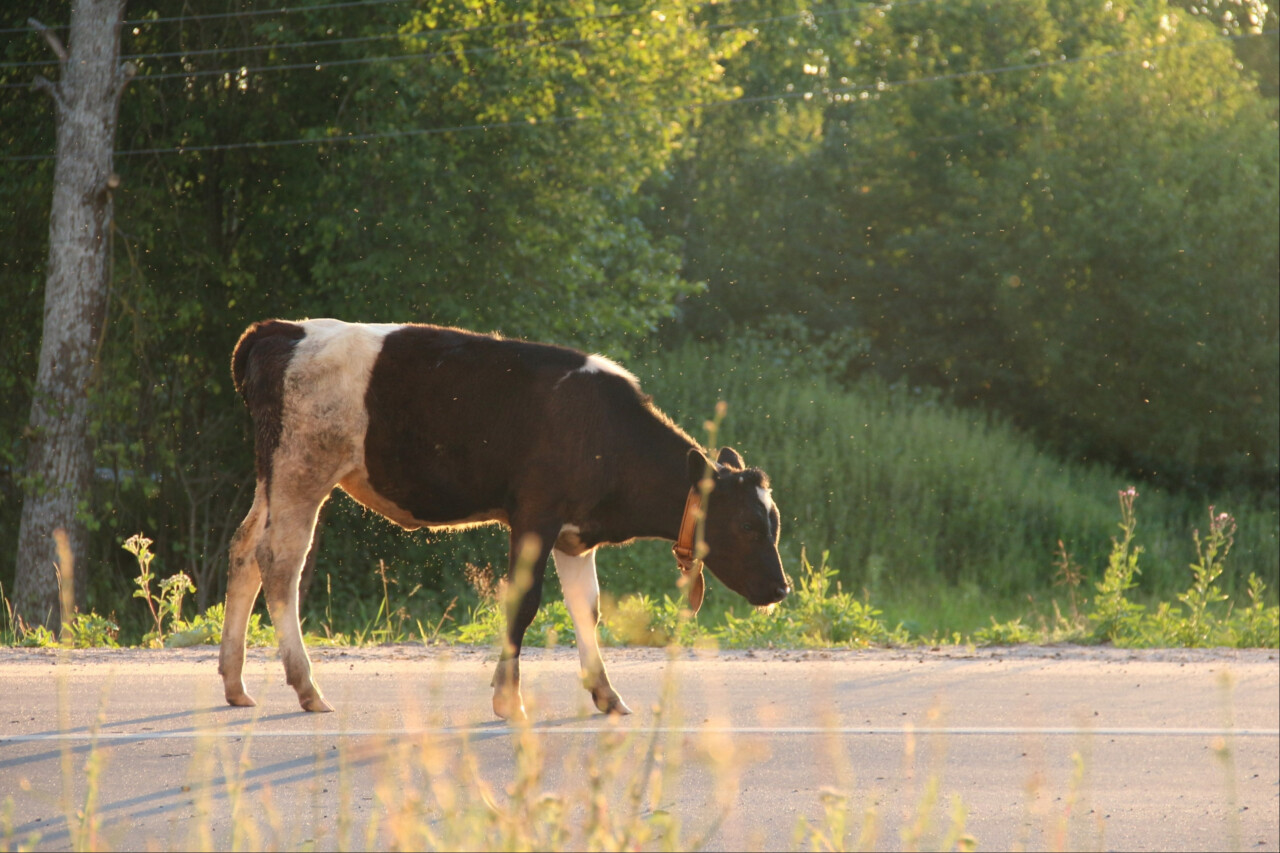 Утро в Козлово начинается не с кофе. На фотографии - привычная картина для этих мест: корова самостоятельно возвращается домой. Здесь нет светофоров, нет пробок и нет нервных водителей, спешащих по делам. Зато есть она – самая важная персона на дороге, корова, которая неторопливо переходит дорогу, словно дефилирует по подиуму. И все ей уступают! Ведь местные жители знают: если корова идет, значит, все ждут. Главное – не сигналить, а то обидится и молока не даст.