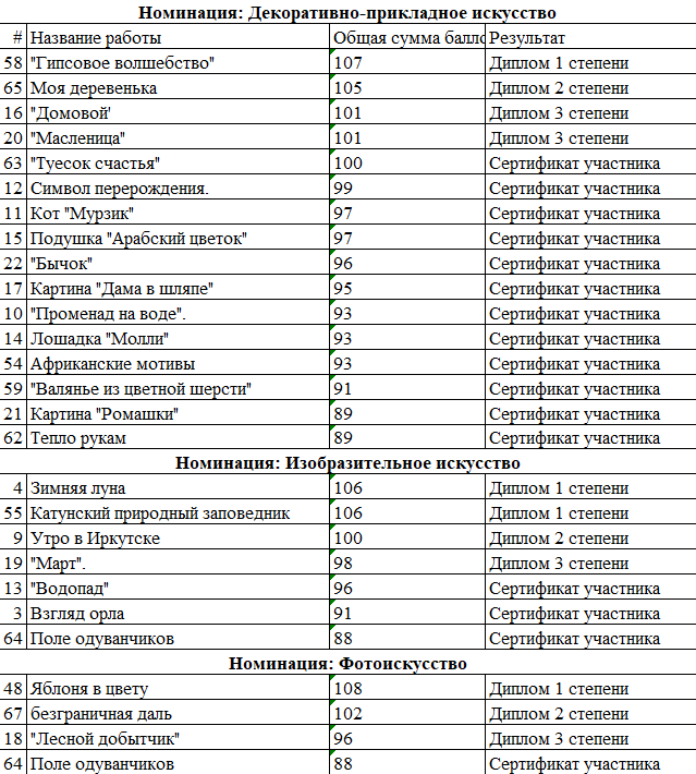 Декоративно-прикладное искусство: Мастерство исполнения и техническое совершенство изделия.Уровень владения ремеслом, аккуратность обработки материалов, высокое качество изготовления и внимание к деталям.
