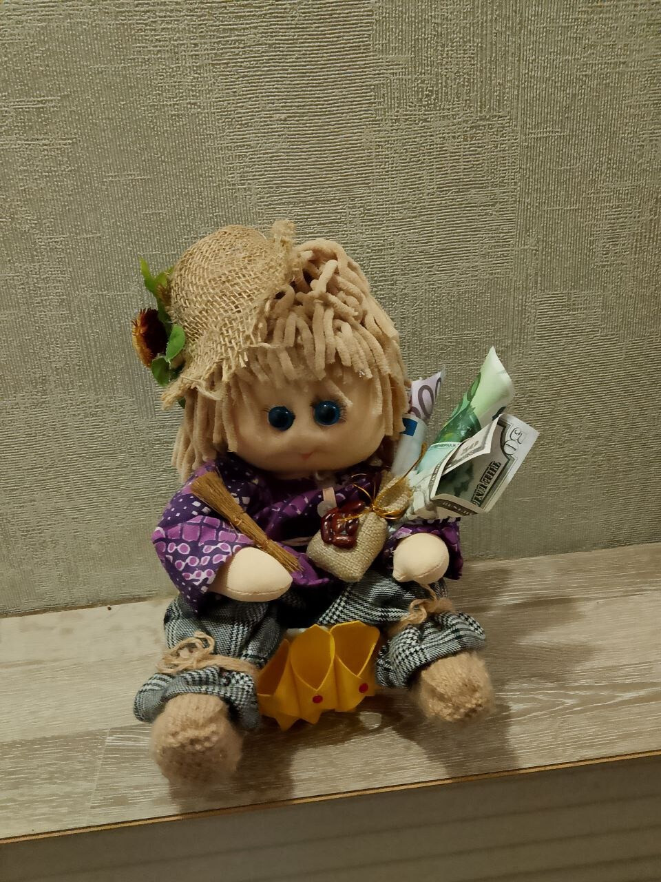 Шитье, ткань кулирка, стеклянный гранулят, наполнитель. Размер 15/20 см.