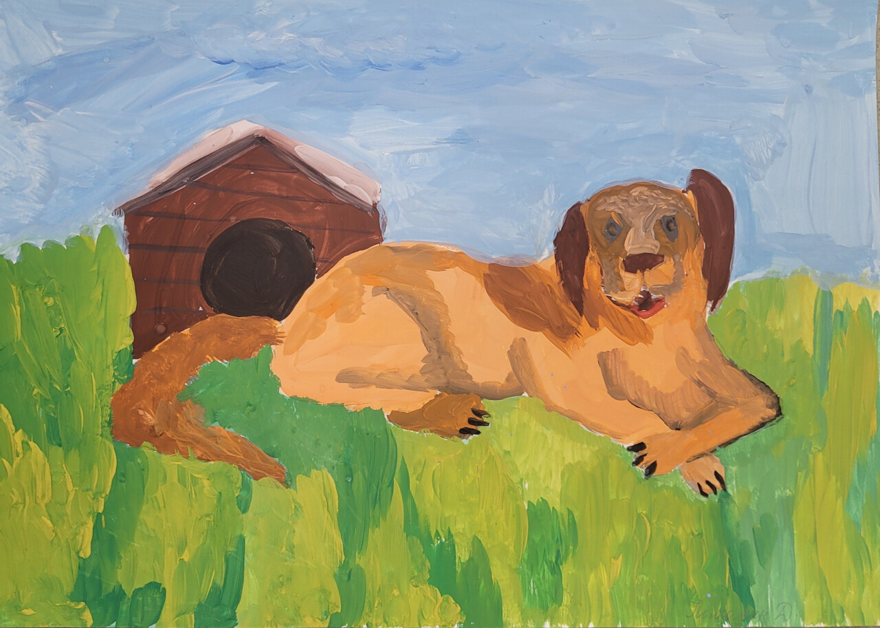 Рисунок "Мой пес Дружок". Выполнен гуашевыми красками.