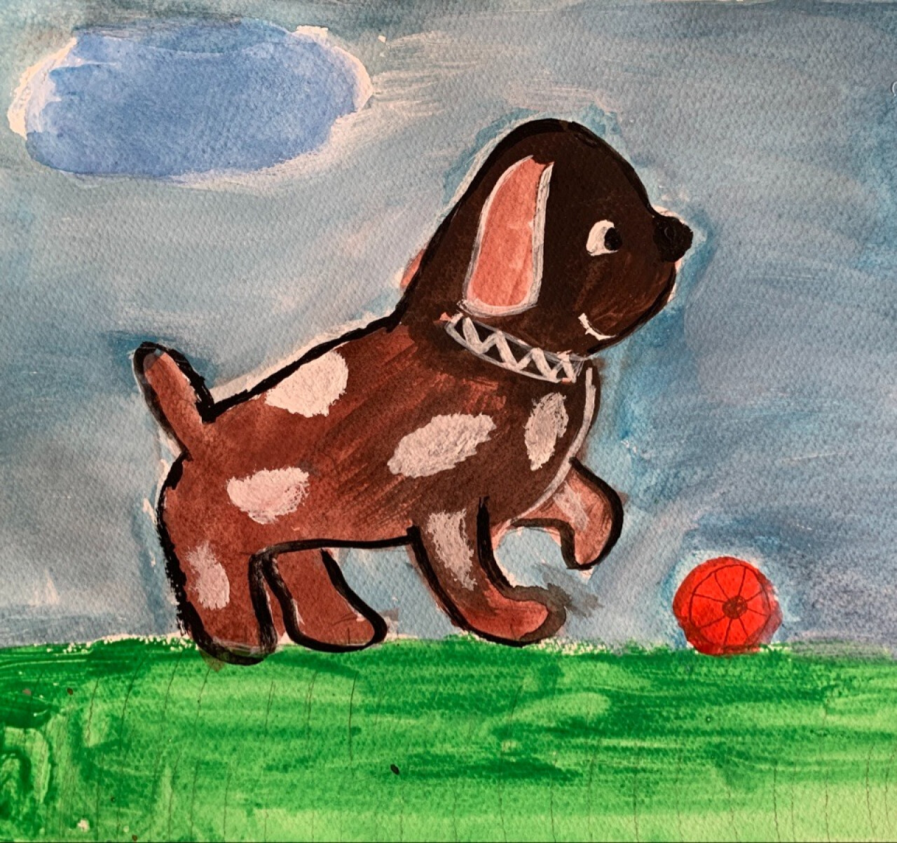 Моего щенка зовут Алый. Он очень добрый и красивый.