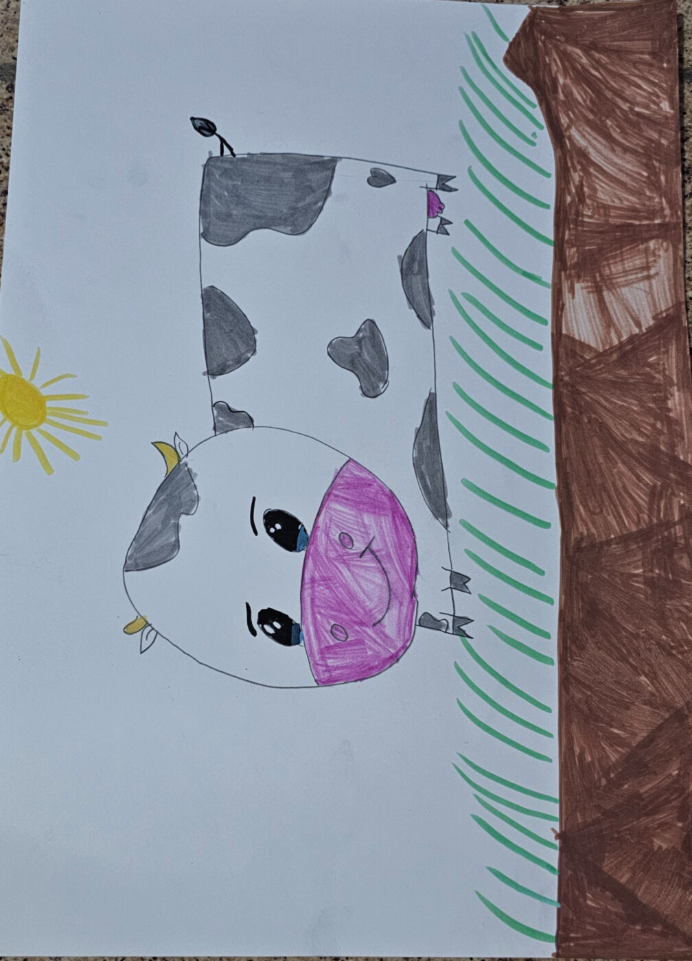 Многие рисуют любимых питомцев — кошек и собак. А я выбрал корову. У меня нет коровы, но она есть у моей бабушки в деревне. Я часто приезжаю к ней и всегда радуюсь встрече.