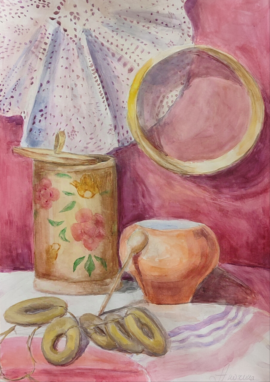 − Деревенский натюрморт, 40х60, акварель, гуашь