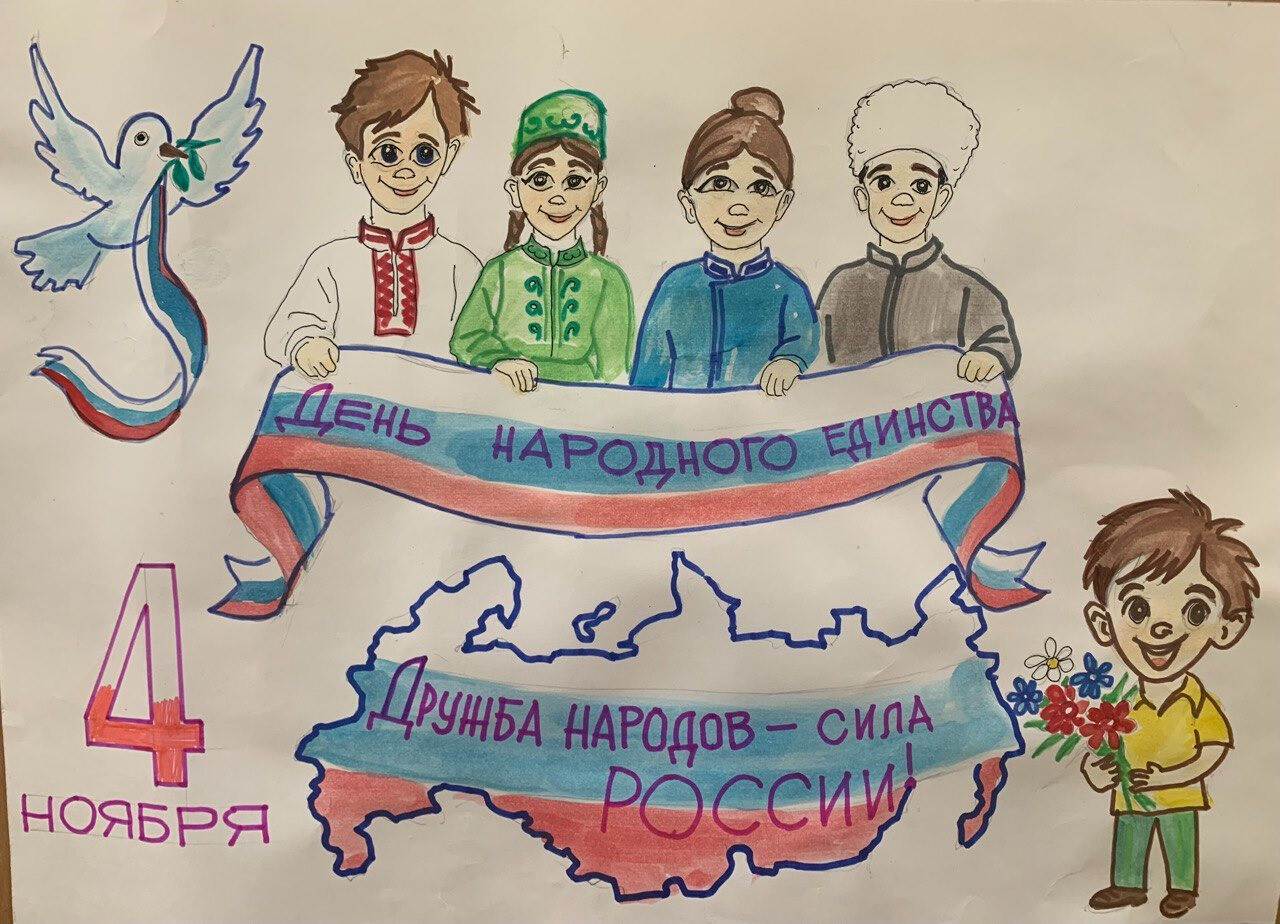 Этот рисунок отражает идею единства и дружбы народов России, что является основной темой
