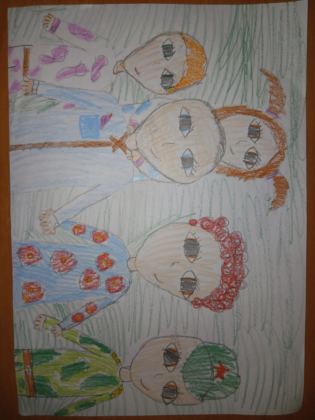 На рисунке изображена моя семья: мама,папа,сестра Лада и мой брат,он военный. Я очень горжусь, что наша семья дружная и очень добрая.Я люблю свою семью!