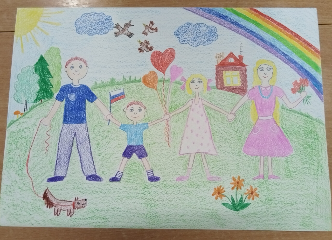 "Моя семья" (цветные карандаши) Виктория Коновал, дошкольник ГБОУ Школа 1912. Педагоги: Антропова Янина Львовна, Кантутис Надежда Ивановна