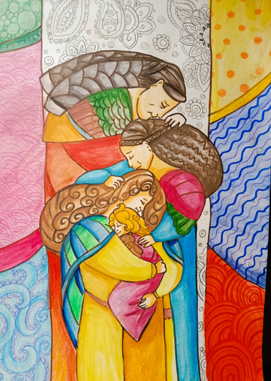 Я хотела показать своим рисунком преемственность поколений. Ведь семья, в заботе и ласке матери. Мама в семье - это тепло и уют, поддержка и понимание. А когда поколения могут дать эту поддержку и любовь друг другу, крепость семьи станет только больше, так как станет больше в этой семье заботы, тепла, нежности и всего самого светлого и доброго, что может дать Мама.