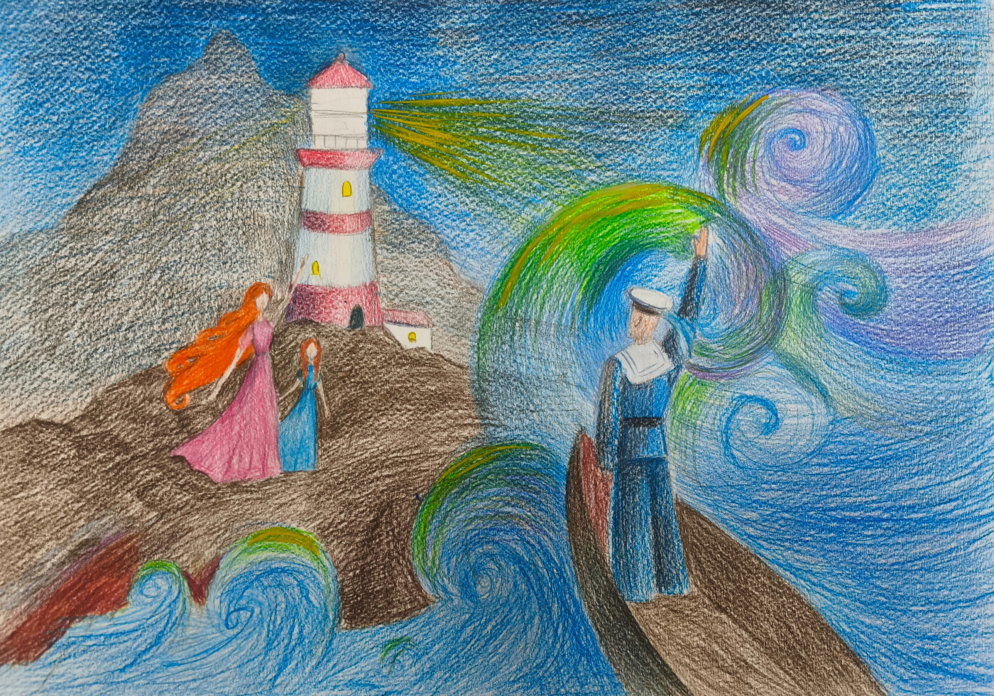 Долматова Полина Андреевна, 9 лет. «Возвращение домой», цветные карандаши. Преподаватель Чудинова Анастасия Олеговна