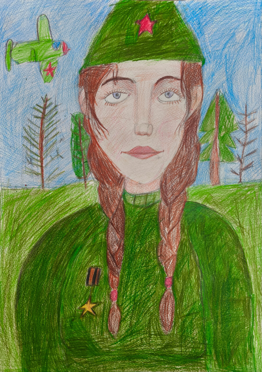 Валетова София, 7 лет. «Портрет героя», цветные карандаши. Преподаватель Чудинова Анастасия Олеговна