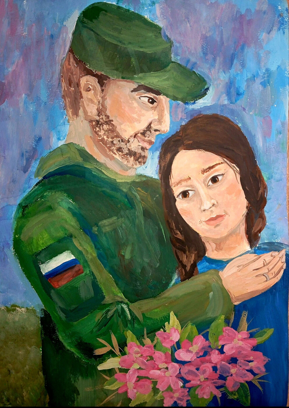 Русский солдат вернулся домой после службы. Он отдал долг Родине и счастлив видеть свою семью.