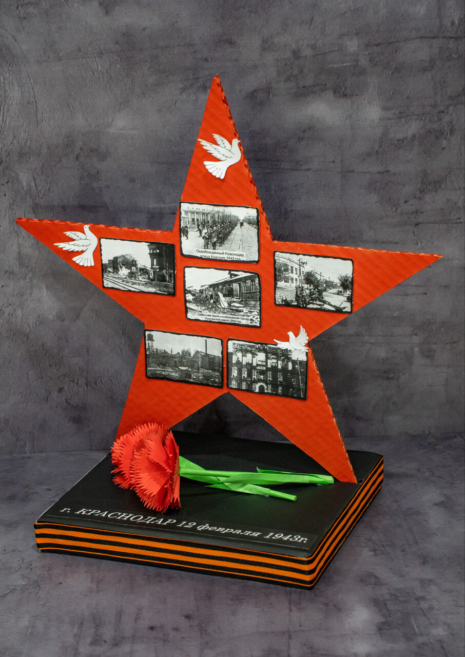 "Звезда Победы", 2016, ДПИ, картон и тканевая георгиевская лента, размер 240*200*390 мм