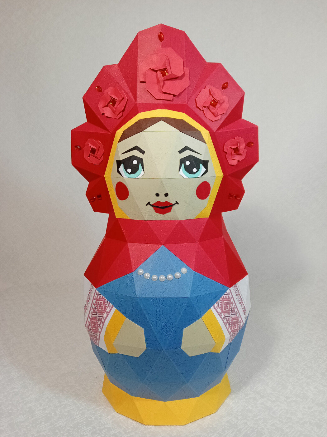 Работа выполнена в технике паперкрафт и оригами. Материалы: картон и бумага. Высота работы 40 см.