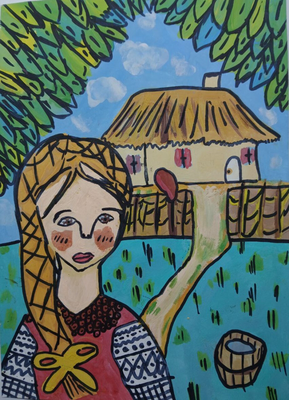 Работа выполнена гуашью с контуром чёрным маркером на формате А4