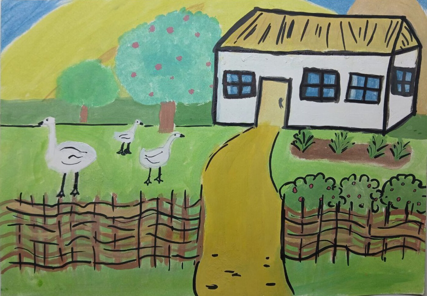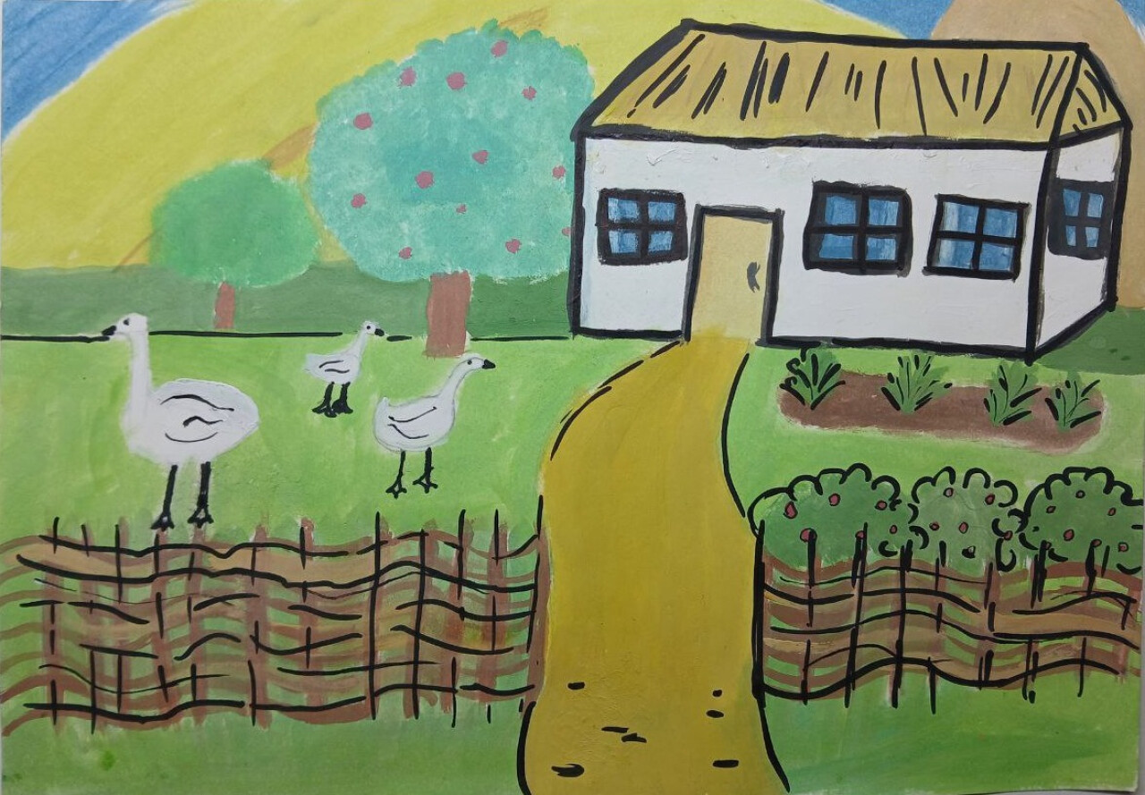 Работа выполнена гуашью с контуром чёрным маркером на формате А4