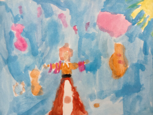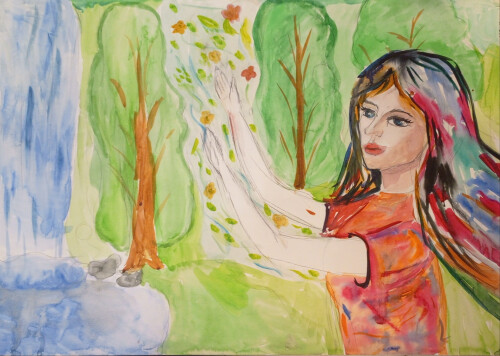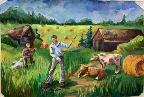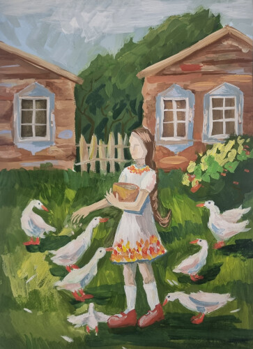 Работа под названием "Россия-родина моя", выполнена на бумаге А4 с помощью карандаша и акварели.