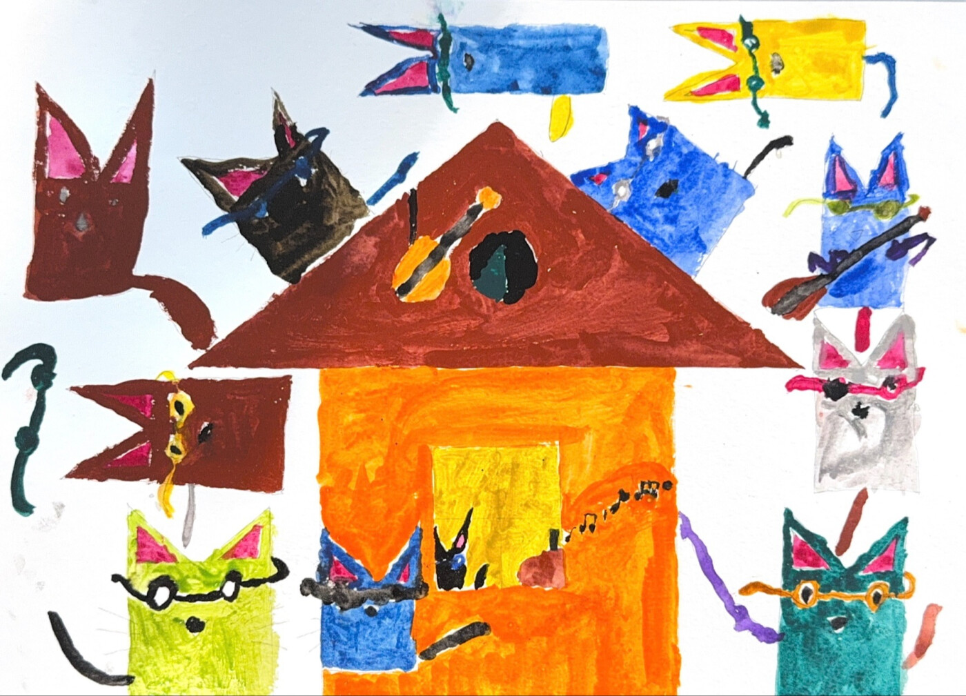 Конкурсная работа Кожевникова Саши про забавных мурчащих музыкантов "Веселые котики"