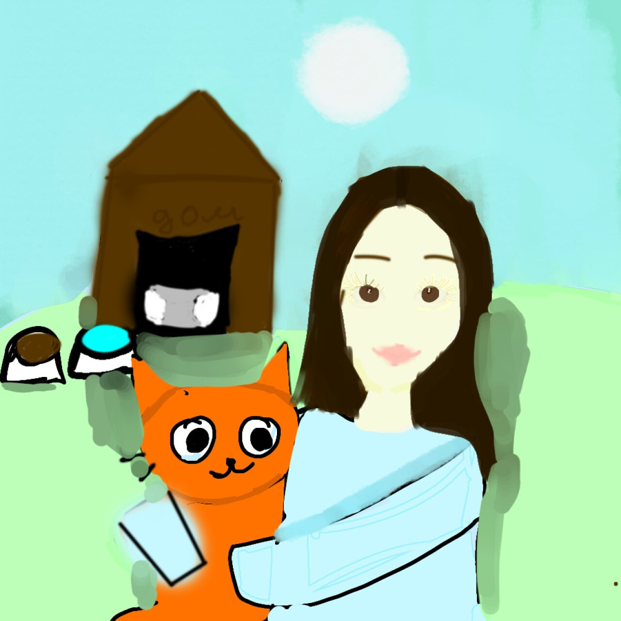 В этом рисунке изображены уличная кошка которая обрела дом и девочка которая организовала это для кошки .