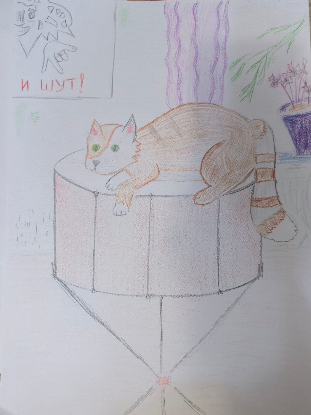 Пока хозяина не было, спал на святом БАРАБАНЕ, но кажется пора кушать! Так как Серёга пришёл!