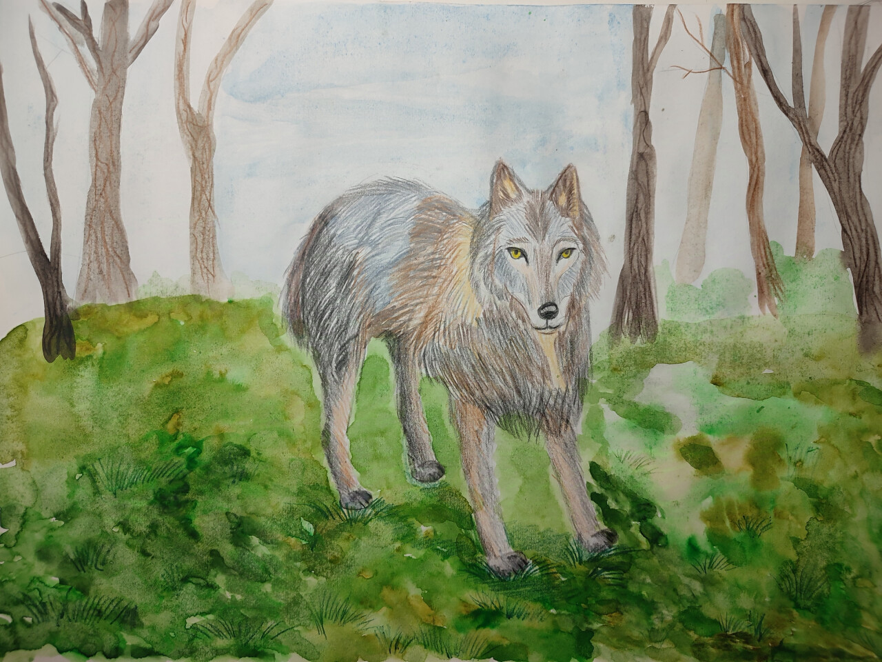 Волки — одни из самых распространённых для России зверей. Они обитают в лесах, их можно встретить как в Крыму, так и в Сибири, и даже у нас, в Московской области! Волки - умные хищники, охраняют лес и не дают распространяться болезням, поэтому я решила нарисовать волка!